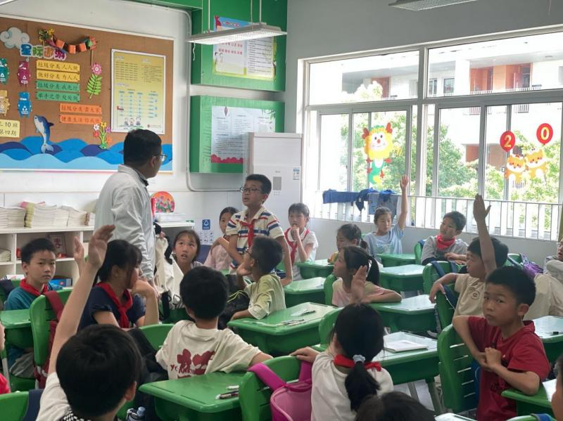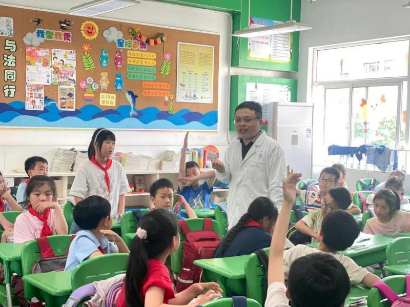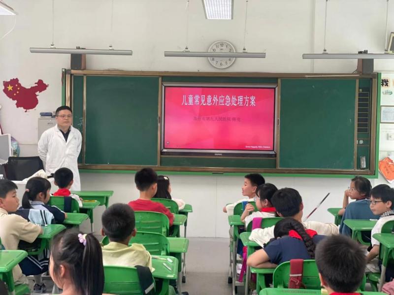 5月23日下午,苏州市第九人民医院的普外科医生陈克走进了苏州湾实验小学三(10)班,为同学们带来了一节生动且极具教育意义的科普课。陈医生在课堂上采取理论知识和实践操作相结合的方式,包括儿童外伤分类、应急处理方案、模拟操作几个环节,向学生们详细讲解了儿童外伤、烧烫伤、动物咬伤等应急情况的施救技巧,指导同学们如何在第一时间进行有效的应急救护。