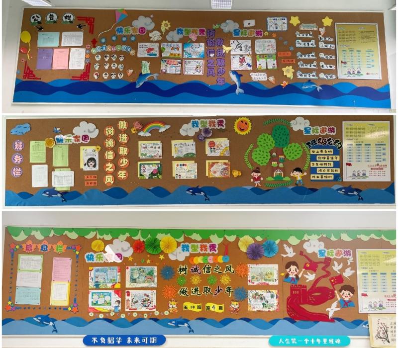 各班学生以“树诚信之风 做进取少年”为主题,设计和布置了班级黑板报,营造了良好的氛围。
