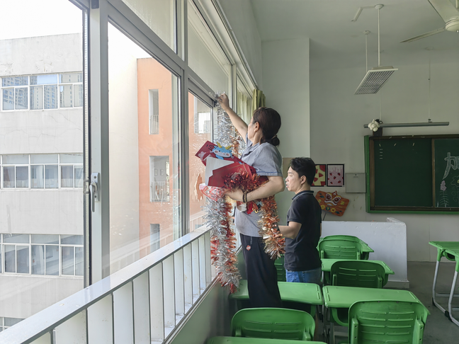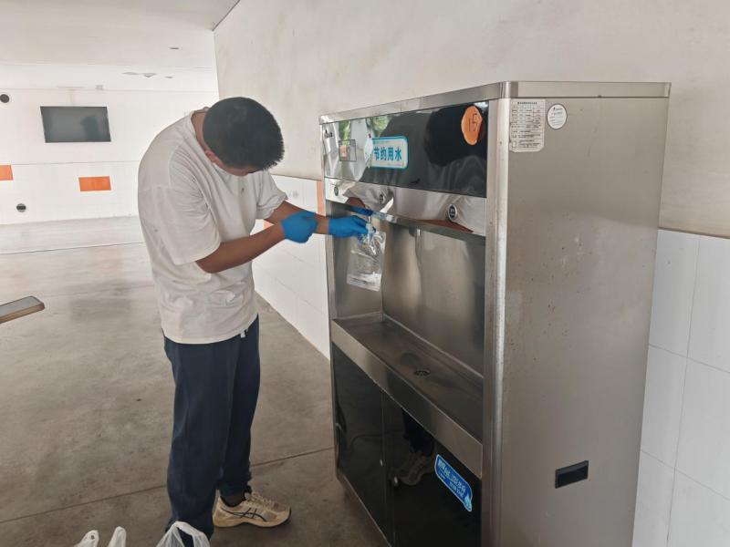 学校提前做好教材和教学用品的分发工作,保障师生开学时教育教学需要,还组织清洁人员对校园和教室的卫生进行全面清扫和消毒,更换直饮水机滤芯并检测水质,给师生营造整洁、卫生的校园环境。