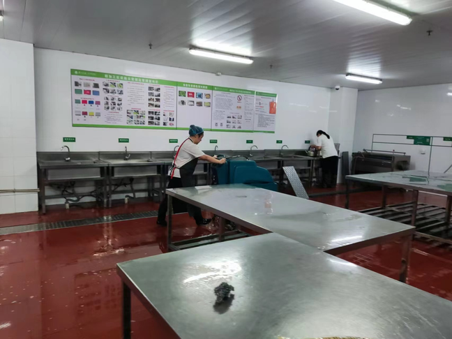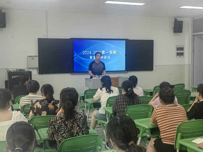 食堂召开食堂安全会议,会上进行了食品安全知识学习。会后食堂工作人员对就餐场所全面进行清洁消毒,操作间环境卫生、厨房管道清理,设施设备及原料储备检查等进行严格的把关。
