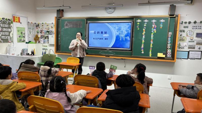2024年11月29日,一(11)班的教室里来了一位不一样的老师——她带着“云”的秘密。沈喆妤同学的妈妈利用自己的专业知识,变身“气象解说员”,带领孩子们了解了日常之外的气象知识,并认识了各种各样特色非凡的云。沈喆妤妈妈还贴心为孩子们准备了干冰并在教室里现场实验,让孩子们第一次近距离感受了天上的“云”。