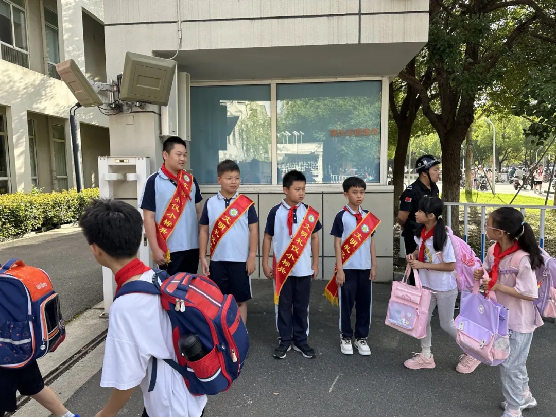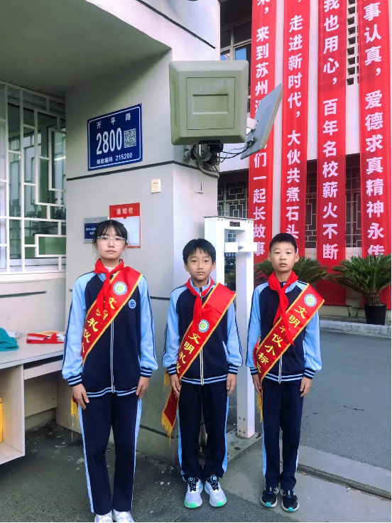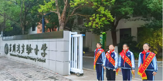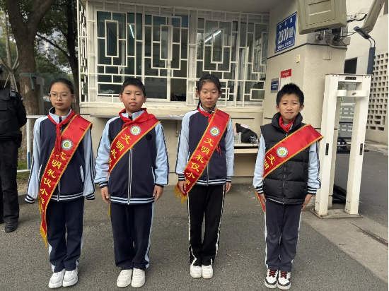 清晨的第一缕阳光洒进校园,一群身着统一校服、佩戴鲜艳红领巾的小学生已经站在了各自的岗位上,他们是学校的“文明示范岗”,那是清晨校园里最亮丽的风景线。